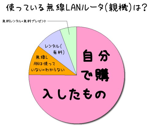 1位の「自分で購入したもの」は、総得票数の75.1%に当たる302票を集めました。一番安い価格帯の製品なら、5000円以下で購入できます。スマートフォンやタブレット端末、ノートPCなど、無線LAN親機が発した無線を受信する子機側は標準で無線LANに対応しているので、導入にあたってあまり費用はかかりません。無線LANに対して、「設定が難しそう、わからない」「機器が高い」「セキュリティが心配」といったイメージをおもちの方は、3回にわたって掲載した記事<超簡単講座 イチから学ぶ無線LAN>をぜひお読みください。
