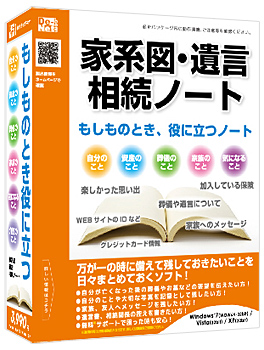 デネットは、万が一の時に備えて、家族や友人に伝えたいことや残しておきたいことをまとめておく遺言ソフト「家系図・遺言・相続ノート」を7月6日に発売する。価格は3990円。