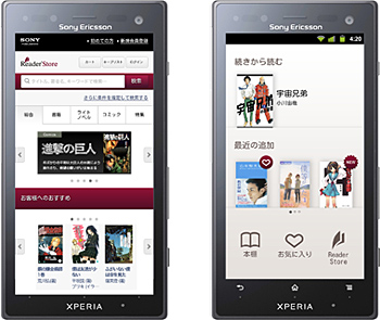 「Reader」をインストールすることによって、「Xperia」シリーズで同社の電子書籍ストア「Reader Store」で販売するコミックや文芸書など、約5万5000(2012年6月11日現在)のコンテンツを外出先からでも購入できる。購入したコンテンツは、「Xperia」シリーズだけでなく、電子書籍リーダー「Reader」や「Sony Tablet」でも楽しめる。