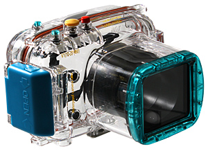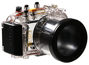 IPX8相当の40m防水性能を備えたポリカーボネート製のハードケース。ミラーレス一眼カメラに装着することで、水中撮影に対応する。レンズ面にはABSガラスを採用したほか、約1mの高さからの耐衝撃性能も備える。