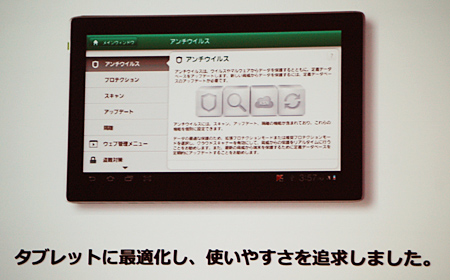 タブレット向けアプリは、タブレットの大画面に最適化したユーザーインターフェースを採用。盗難・紛失対策のGPS追跡機能で、タブレットの位置を特定することができる。また盗難の場合、遠隔地からタブレットのインカメラで周辺を撮影する機能で、タイミングがよければ盗んだ犯人の姿を捉えることができる。このほか、遠隔操作による端末ロック機能、ウェブ経由で盗難対策機能を実行するウェブ管理メニュー機能などを備える。