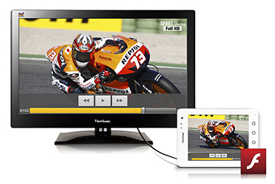 薄型テレビと接続して「ViewPad 7e」の映像を大画面で楽しむことができる