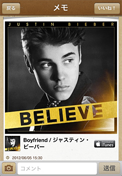 iPhone版は写真に音楽をつけて投稿・試聴できる