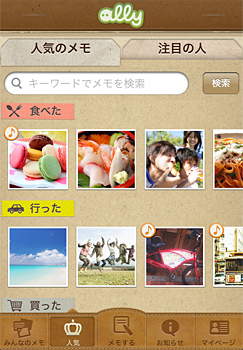 「人気のメモ」の画面