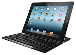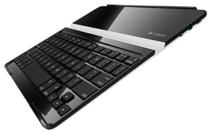 新iPad/iPad 2用のBluetoothワイヤレスキーボード、スタンド、保護カバーの一台3役で、iPadをノートPCのように使用できる。マグネットクリップでiPadに簡単に取りつけられ、カバーを開くとiPadが起動し、閉じるとスタンバイモードになる。