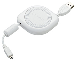 PCなどのUSB端子から「LUMIX」を手軽に充電できる。ケーブルは巻き取ってケースに収納し、すっきり携帯できる。ケーブル長は約1.5mで、重さは約55g。
