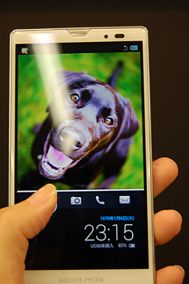 ロック画面「ウェルカムシート」は、撮影した写真を最大で5種類、壁紙として設定できる。主要なショートカットアイコンや更新情報が壁紙と重ならないレイアウトで、フォトライブラリの感覚で壁紙を楽しめる。さらに、使用頻度の高い電話、メール、カメラをロック画面から起動したり、メールや電話の着信履歴、天気や株価などの情報をリアルタイムで確認したりできる。