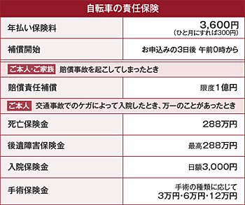 4月2日に販売を開始した「自転車の責任保険」は、被保険者本人または家族が賠償事故を起こした場合に、最大1億円まで補償する交通事故傷害保険。保険料は、年間3600円。ウェブサイトからクレジットカード払いで手続きができる。申込み後、最短3日後で補償がスタートする。契約は自動継続。