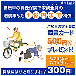 エアーリンク、「自転車の責任保険」のスマートフォンサイトを開設、図書カードプレゼントも