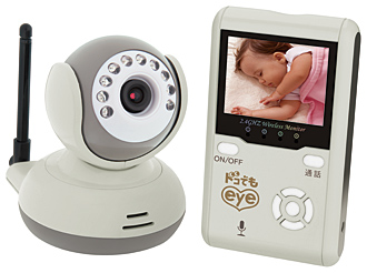 赤ちゃんやペットのいる家庭や、お年寄りを介護している家庭向けのカメラ(子機)とモニタ(親機)のセット。見守る人の思いやりとやさしさを表現し、「eye」と「愛」をかけて「ドコでもeye」と名づけた。