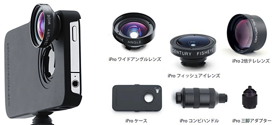 駒村商会は、米シュナイダーオプティクス製のiPhone 4S/4専用レンズシステム「iProレンズシステム」を、7月25日に発売する。ラインアップは、「iProレンズシステム」「iPro三脚アダプター」「iPro iPhoneケース」「iProコンビハンドル」「iProフィッシュアイレンズ」「iProワイドアングルレンズ」「iPro2倍テレレンズ」で、価格はオープン。