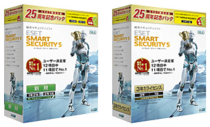 「SET Smart Security V5.2 25周年記念パック」(左)と「ESET Smart Security V5.2 3年1ライセンス 25周年記念パック」
