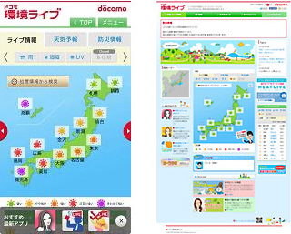 NTTドコモ、天気予報・紫外線情報・防災情報などを配信するポータルサイト「ドコモ環境ライブ」