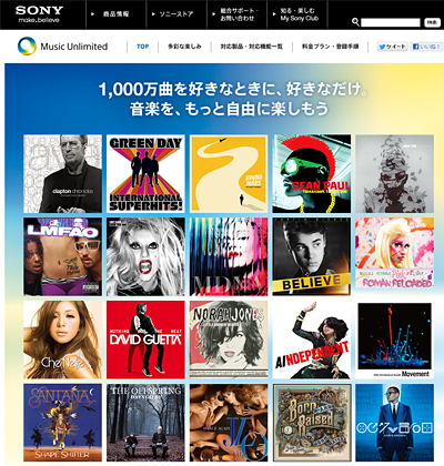 ソニーは、7月3日、1000万曲を超える楽曲を、Android搭載スマ―トフォンなど、さまざまな対応機器で再生できるクラウドベースの定額制音楽配信サービス「Music Unlimited(ミュージックアンリミテッド)」を、日本向けに開始した。料金は30日間で1480円。加入後30日間は、無料で体験できるキャンペーンを実施している。