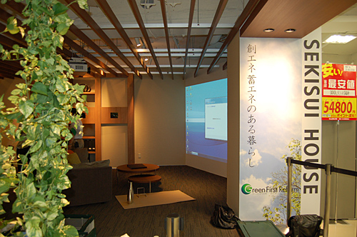 5階は生活家電、調理家電、太陽光/オール電化、お酒の売り場。フロアの奥には同社初の積水ハウスコーナーを設置し、モデルルームを体験しながら省エネに対応したリフォーム相談を受け付ける。