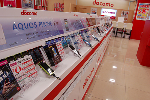 NTTドコモのコーナー。新モデルがズラリと並ぶ