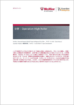 マカフィーは、7月9日、グローバルに展開する高度なサイバー金融詐欺に関する報告書「分析:Operation High Roller」日本語版を発表した。米ガーディアンアナリティクスと共同で、6月26日に発表した報告書の日本語版。