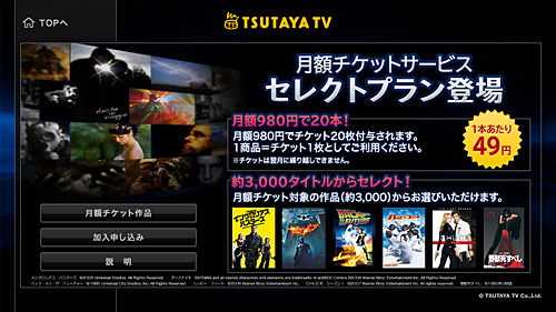 TSUTAYA.com、「TSUTAYA TV」の新サービス「セレクトプラン」、月額980円で20本