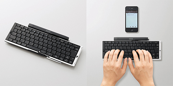 スライド開閉機構を備えた折りたたみ式キーボード。本体にはヘアライン加工を施した。キータイプはパンタグラフ方式で、キー数は80、キーピッチは16.5mm、キーストロークは2.0mm。