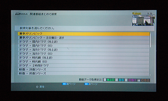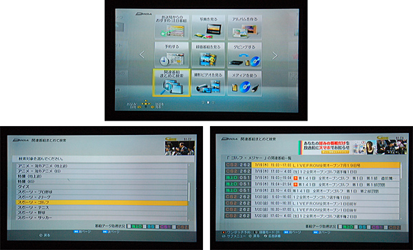 「関連番組まとめて検索」は、番組がテーマごとにグループ化されて、リモコン一つで簡単に検索&チェックできる