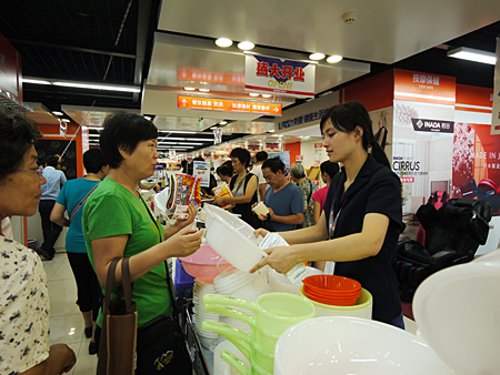 ハードディスクを購入した男性に話を聞くと、「家電だけでなく日用品もそろっていて大変いいスタイルだと思う」と幅広い品揃えを評価。また、日本ブランドについては「品質が保証されていて大変いい」と語った。雑貨売り場で日用品をカゴ一杯に入れていた女性は、「商品の展示がわかりやすくて製品も魅力的」と話してくれた。また、付近在住の女性は「スーパーのように手に取って商品を選べるのでいい。また、百貨店のような高級感がありながら価格が安い。こうした店は今後広がるのでは」と語った。