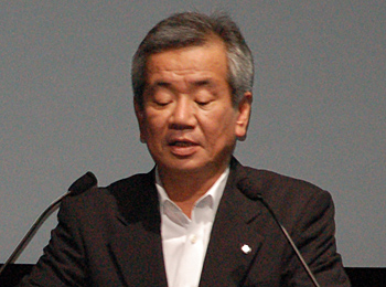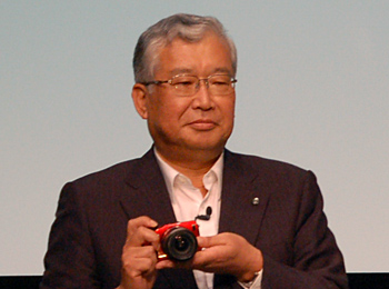 ミラーレス一眼市場参入を表明する川崎正己社長