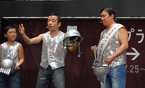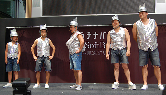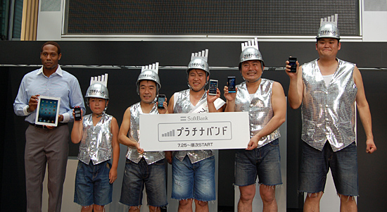 ソフトバンクモバイルは、7月25日、900MHz帯を利用する「プラチナバンド」サービスの開始を記念して、都内でイベントを開催。白戸家のお兄ちゃんと、お兄ちゃんの友だちとしてお笑い芸人のスギちゃんが登場した。