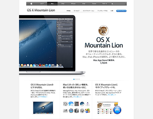 「OS X Mountain Lion」の紹介ページ
