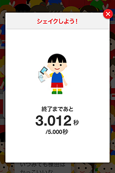 スマートフォンをシェイクして応援する「みんなで応援モード」の画面
