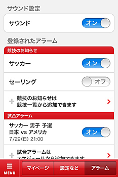 そのほか、全競技の試合スケジュールと、テレビで放映される番組のスケジュールを確認して、アラームを設定することができる。結果速報や試合中は、テキストで実況する。対応OSは、iPhone版がiOS 4.0以上、Android版がAndroid 2.2以上。