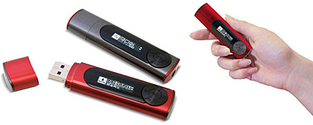 PCに直接接続できるUSBコネクタ一体型の携帯オーディオプレーヤー。今年2月に発売した8GBモデルに、新たに16GBモデルを追加する。演奏時間4分の曲を圧縮レート128Kbps(MP3形式)で保存した場合、約3840曲を収録することができる。