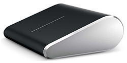 「Wedge Touch Mouse 3LR-00008」は、読取りセンサに「BlueTrack Technology」を採用し、使う場所を選ばずに、外出先でも安心して使用できる2ボタンマウス。一見マウスに見えない設計だが、上下左右にスクロールしたり、フリックして高速スクロールしたりなどの操作ができる。