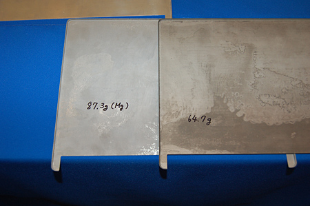 マグネシウム合金(左)とマグネシウムリチウム合金