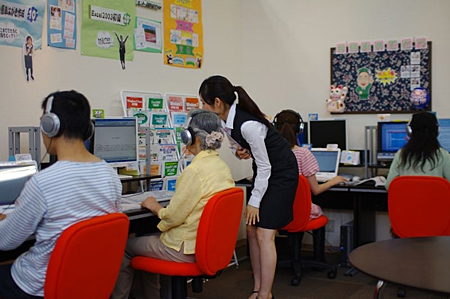 教室では、電源の入れ方、充電の方法、インターネット、電子メール・アプリ、「ドコモ地図ナビ」「ドコモヘルスケア」、カメラの使い方などを、全6講に渡って学習する。DVDを見ながら、わからない部分は講師に気軽に質問できるので、じっくり、確実に操作をマスターすることができる。テキストは、「もっと楽しむ!らくらくスマートフォン(FOM出版)」を使用。1講座60分で、受講料は1785円。