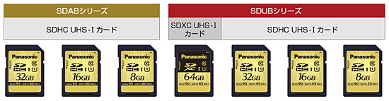 「RP-SDUBシリーズ」は、SDXCカードが64GB、SDHCカードが8/16/32GBの3種類。実勢価格は、64GBのSDXCカードが2万円前後、SDHCカードの8GBが3000円前後、16GBが5500円前後、32GBが1万円前後の見込み。