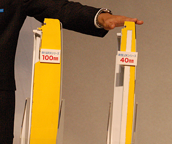 さらに、従来はウレタンフォームだけだった冷凍室の扉を、その10倍の断熱在をもつ真空断熱材を併用し、従来モデルの100mmから40mmに薄型化しながら省エネ性能を高めた。これによって「MR-JX60W」は、業界で初めて本体幅685mmで600Lの大容量を実現した。