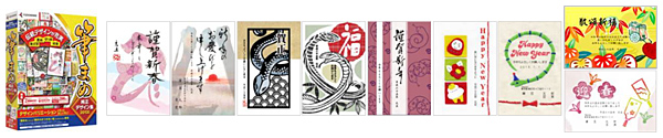 さらに、ハガキ・住所録ソフト「筆まめ」と、ハガキ作成から冠婚葬祭、日常のおつきあいの予定や履歴までを管理できるソフト「筆まめおつきあい帳」ユーザ向けの年賀状デザイン素材集「筆まめ純正デザイン集2013年版」(CD-ROM版)を発売する。日本の伝統美をテーマにしたデザインや、さまざまな手法で描いた趣のあるデザインなど、2300点以上を収録する。価格は3990円。