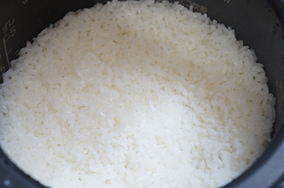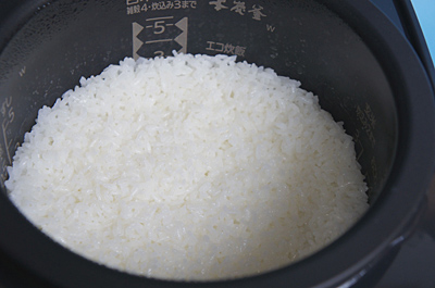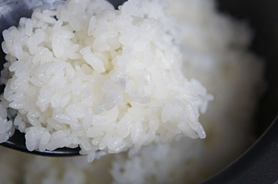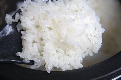 さっそくご飯を炊いた。お米はスーパーで購入した平成24年度の新米コシヒカリ。精米してから2週間ほど経過し、室温で保存していたものだ。2合の新米を、まずは「ふつう」モードで炊いた。