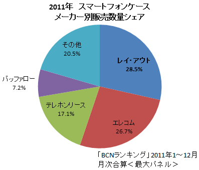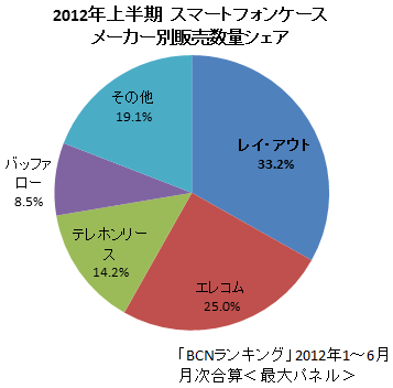2012年1~6月の「BCNランキング」によると、1位はレイ・アウトで販売数量シェアは33.2%だった。次いで2位はエレコムで25.0%、3位はテレホンリースで14.2%だった。