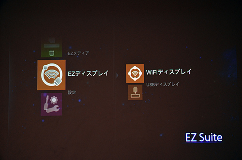 PCとのワイヤレス接続には本体側の操作メニューで「Wi-Fiディスプレイ」を選択する