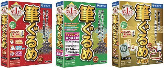 左から「筆ぐるめ 20」「筆ぐるめ 20 アップグレード・乗り換え版」「筆ぐるめ 20 年賀状 [巳]」