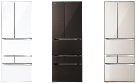 ラインアップと実勢価格は、クリスタルのような輝きをもつガラスドアを採用したプレミアムモデルで定格内容積556Lの「GR-F56FXV」が30万円前後、510Lの「GR-F51FXV」が28万円前後の見込み。カラーは、クリアグランブラウン、クリアシェルホワイト、クリアレディッシュゴールドの3色。10月下旬に発売する。