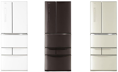 鋼板ドアのスタンダードモデルで510Lの「GR-F51FS」が26万円前後、481L「GR-F48FS」が24万円前後の見込み。カラーは、グランブラウン、シェルホワイト、ブリーズシャンパンの3色。10月中旬に発売する。