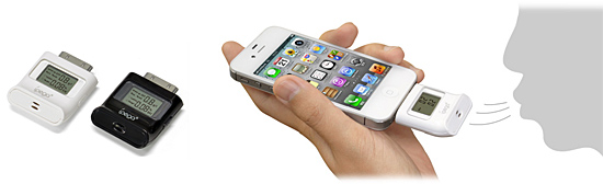対応機種は、iPhone 4S/4/3GS/3G、新iPad(2012)/iPad 2/iPad、iPod touch 第4世代/第3世代/第2世代/第1世代。検知には、半導体ガスセンサを使用する。サイズは幅38.0×高さ13.0×奥行き46.5mmで、重さは約15g。