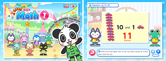 日本の小学校1年生が学習する算数の内容をすべて収録。かわいいキャラクターたちが、基礎からわかりやすく教えてくれるアニメーションコーナーと、実際に問題を解いて理解を深めるドリルコーナーで構成する。学習データは保存されるので、保護者は子どもがどこまで学習したかを確認できる。