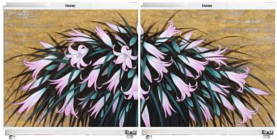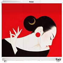 「Haier Think Series 305L冷凍冷蔵庫(JR-NF305AR/AL)」には、デザイン画「Desire」と「Snow」を採用。「Desire」は、305Lを2台購入し、ふだんの生活では1台だけを使用し、パーティやたくさんの食材をストックする時にもう1台を稼動させる使い方を提案。組み合わせると1枚の絵が完成するという芸術性と、エコで便利なスタイルを組み合わせた。「Snow」は、まずは305Lを1台購入しておいて、必要なときにもう1台を横に追加するスタイルを提案。1台でも2台でもアートが楽しめる。