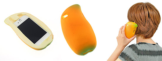マンゴーの形で、ウレタン素材を使用した柔らかい質感の着ぐるみに近いデザインのケース。マンゴーをいじったり、耳に当てて話したりすることで、自分だけでなく周囲の人も楽しませることができる。