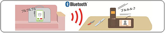 本体とスマートフォンをBluetoothで接続し、スマートフォンの発信や着信の操作ができる「スマホコネクト」機能を搭載。スマートフォンをカバンに入れたままにしていたり、マナーモードにしていて着信に気づかなかったりしても、固定電話機(JD-4C2CL/CW)に着信を知らせる。スマートフォンの電話帳データの転送にも対応する。