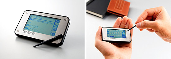 1件のアカウントに対して、「件名」「ID(ユーザー名)」「パスワード」「グループ」「メモ」を登録できる。最大200件のアカウントに対応し、セキュリティの高いランダムな文字列の新しいパスワードを作成する「パスワード作成補助機能」を備える。2.5インチの液晶画面はタッチ入力に対応し、パスワードなどの複雑な文字列でも、付属の専用タッチペンを使って簡単に入力できる。