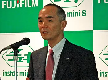 発表会では、富士フイルムの山元正人イメージング事業部長が「世界でたった1枚のプリント、その場で共有できるわくわく感、すぐにアレンジできるなど、インスタントカメラには、デジカメにはない魅力が詰まっていることをお伝えしたい」と「instax mini 8 チェキ」を紹介。「せかいで一番“カワイイ”インスタントカメラ」がコンセプトの新製品は、横116.0×縦118.3×奥行き68.2mmと、従来機から10%小さくなった。価格はオープンで、実勢価格は8000円前後の見込み。